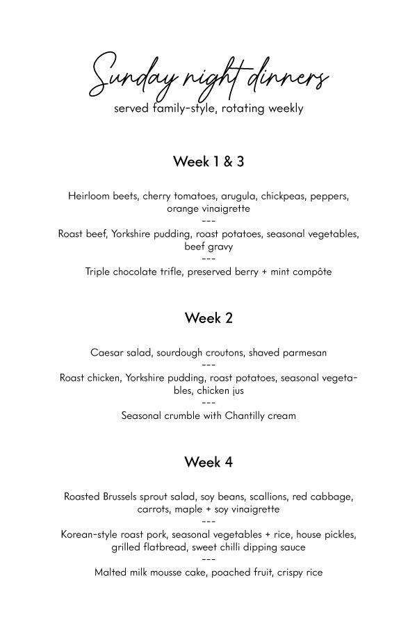 Sunday night family-style dinner